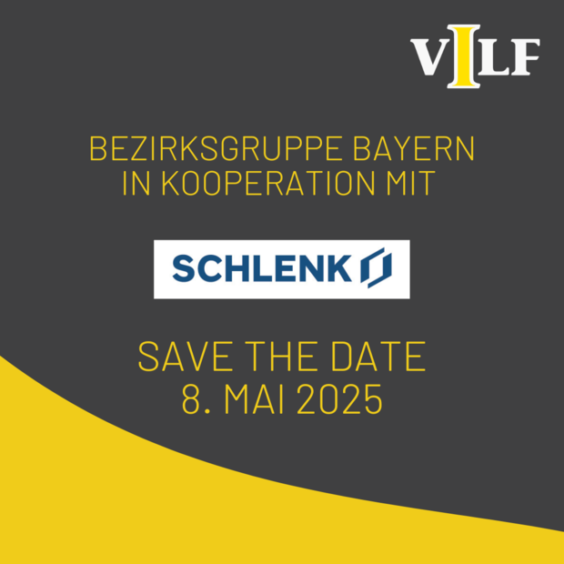 Die VILF Bezirksgruppe Bayern freut sich, gemeinsam mit SCHLENK eine spannende Veranstaltung in Roth anzukündigen! Ein Tag voller interessanter Einblicke, Austausch und Vernetzung erwartet euch. Jetzt schon den Termin vormerken - wir freuen uns auf eure Teilnahme!