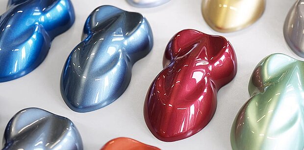 SCHLENK liefert konventionelle leafing- und nonleafing- Aluminiumpigmente (Cornflakes), hochwertige Silberdollar Aluminiumpigmente, extrem dünne und hochglänzende Folienpigmente (Vacuum Metallized Pigments – VMP‘s), leafing- und nonleafing- Goldbronzepigmente in den Lieferformen Pulver, Paste und Granulat.